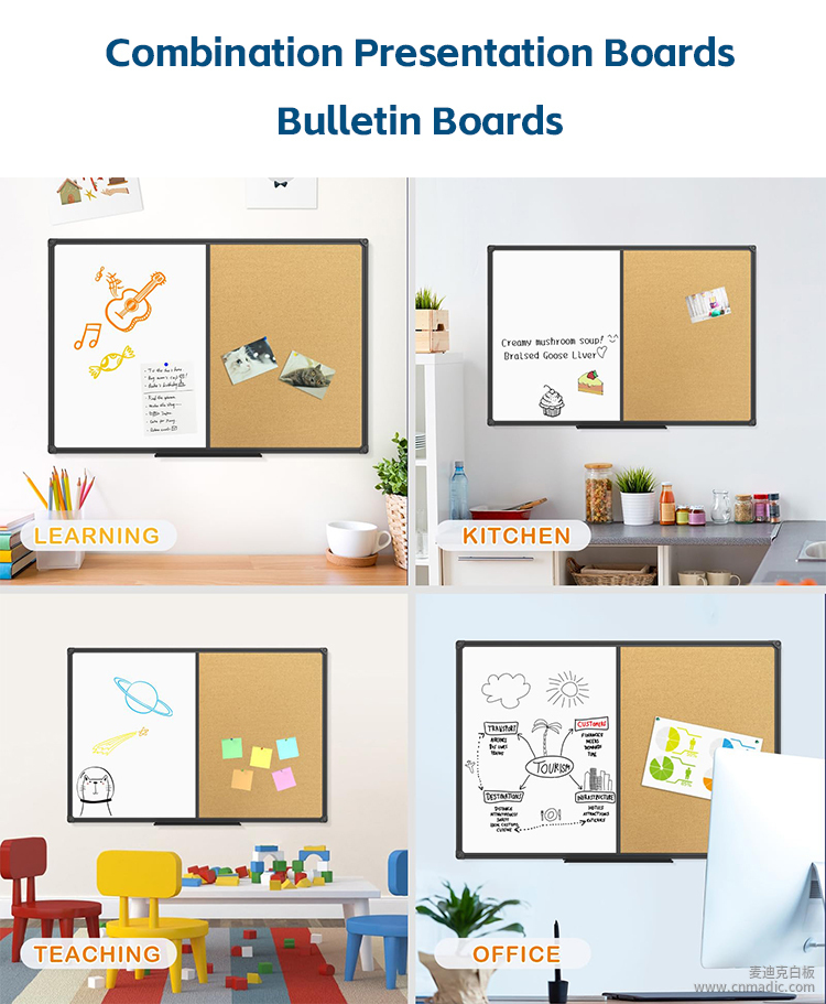 惠州市麥迪克科技有限公司(原深圳市麥迪克家居用品有限公司,白板OEM、ODM廠家,擁有20多年的白板寫字板研發(fā)、生產(chǎn)經(jīng)驗(yàn),跨境專供。)當(dāng)前位置:麥迪克白板廠家 > 軟木結(jié)合板 > 軟木組合板多尺寸軟木告示板定制